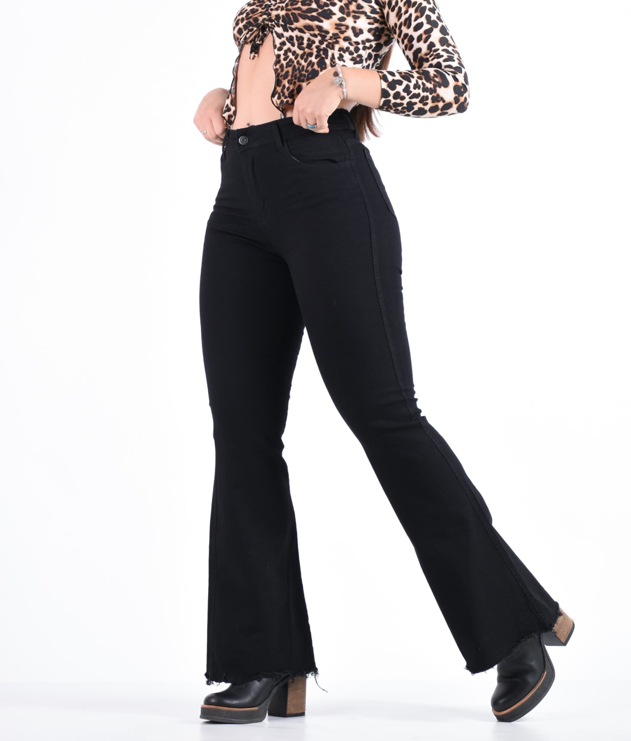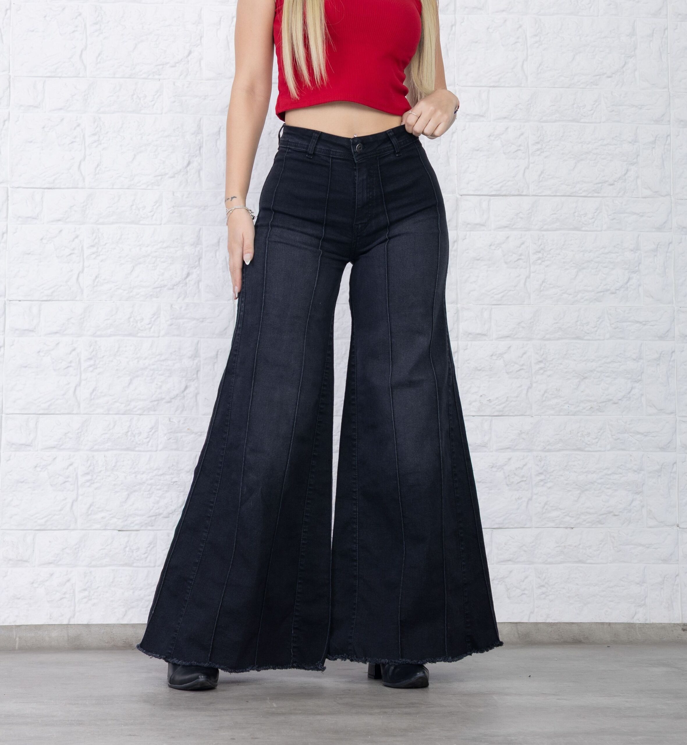 301N I JEAN PALAZO NEGRO CON TERMINACION DESFLECADA TIRO ALTO TALLES 36 AL 50 EXITO JEANS