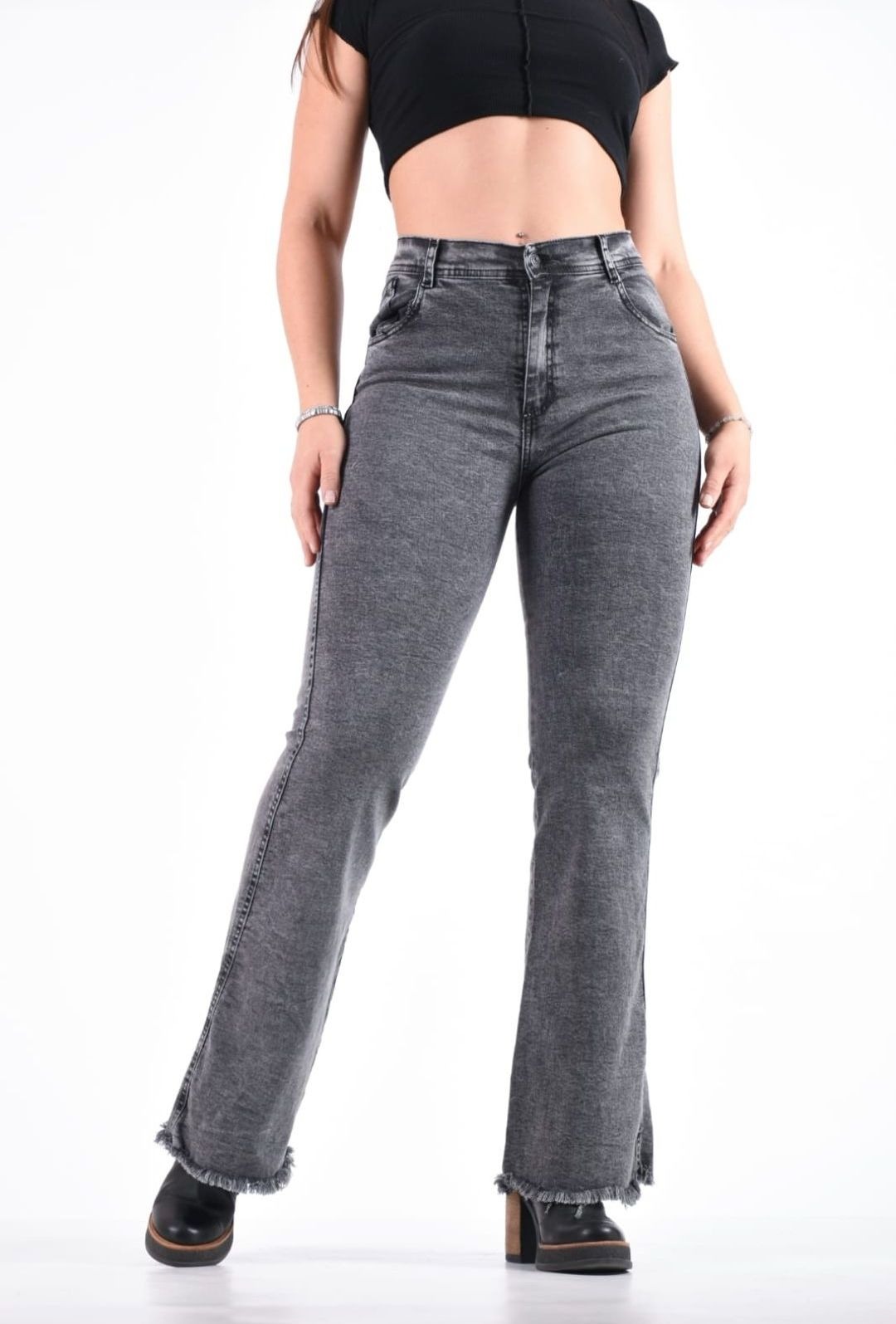 303NEV I JEAN PALAZZO GRIS DESGASTADO CON DESFLECADO EN BOTA TIRO ALTO TALLES 36 AL 50 EXITO JEANS
