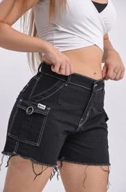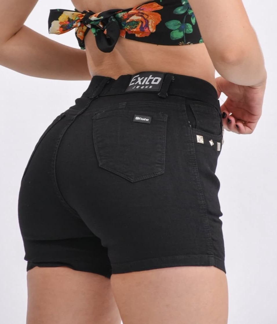0376 I SHORT NEGRO RIGIDO CON ROTURAS DESFLECADO EN BOTA TIRO ALTO TALLES 36 AL 46 INQUIETA