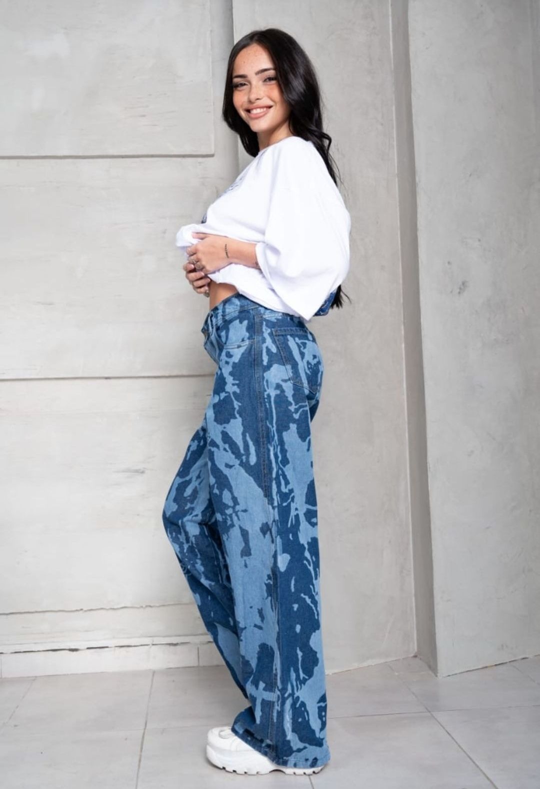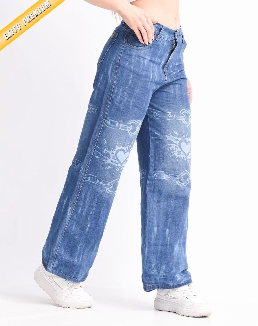 137 | WIDE LEG AZUL RIGIDO CON ACABADO LASER ABSTRACTO TIRO MEDIO TALLES 36 AL 46 EXITO JEANS