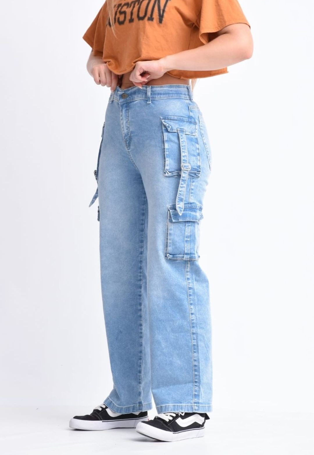 310 I JEAN MULTICARGO AZUL LAVADO DESFLECADO EN BOTA TIRO ALTO TALLES 36 AL 46 EXITO JEANS